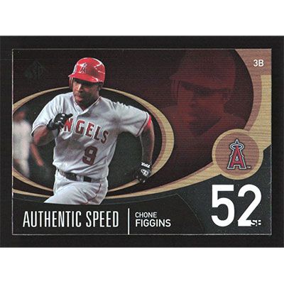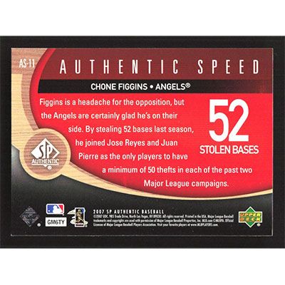 This is a 2007 SP Authentic Authentic Speed Chone Figgins baseball card. The card is #AS-11 and pictures show condition.