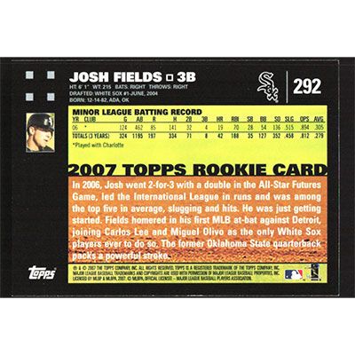 This is a 2007 Topps Josh Fields baseball card. The card is #292 and pictures show condition.