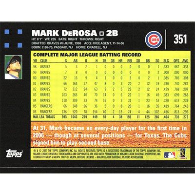 This is a 2007 Topps Mark DeRosa baseball card. The card is #351 and pictures show condition.