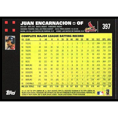 This is a 2007 Topps Juan Encarnacion baseball card. The card is #397 and pictures show condition.