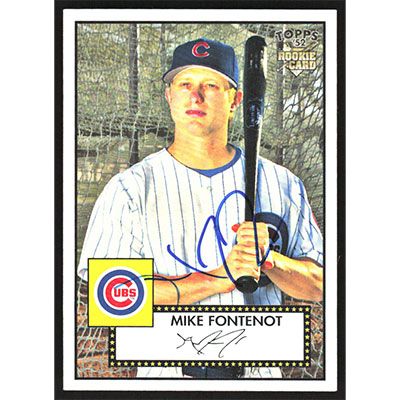 This is a 2007 Topps '52 Mike Fontenot autographed baseball card. This card has been signed, in blue, by Mike Fontenot, and is guaranteed authentic by Ballcardz.com. The card is #29 and pictures show condition.