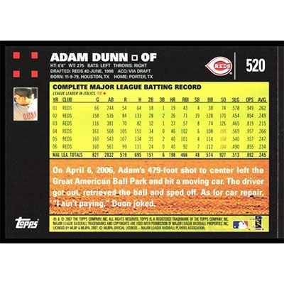 This is a 2007 Topps Adam Dunn baseball card. The card is #520 and pictures show condition.