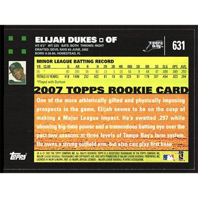 This is a 2007 Topps Elijah Dukes baseball card. The card is #631 and pictures show condition.
