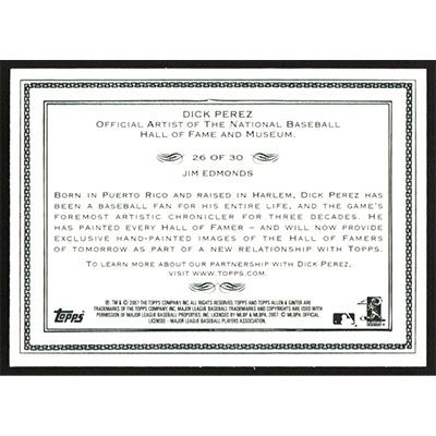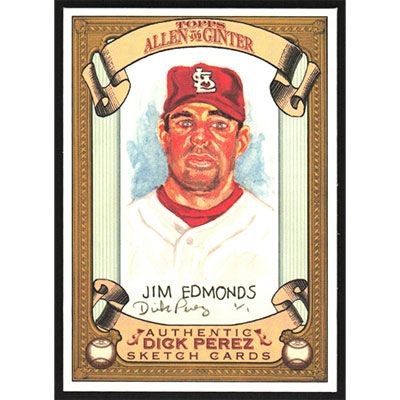 This is a 2007 Topps Allen & Ginter Dick Perez Sketches Jim Edmonds baseball card. The card is #26 and pictures show condition. Team(s): St. Louis Cardinals