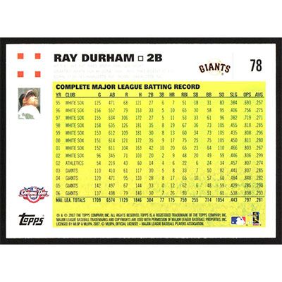 This is a 2007 Topps Opening Day Ray Durham baseball card. The card is #78 and pictures show condition.