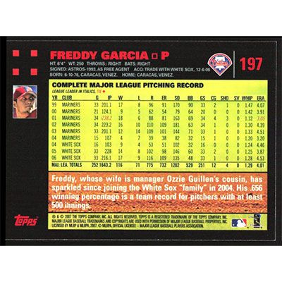 This is a 2007 Topps Red Backs Freddy Garcia baseball card. The card is #197 and pictures show condition.