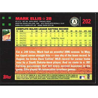 This is a 2007 Topps Red Backs Mark Ellis baseball card. The card is #202 and pictures show condition.