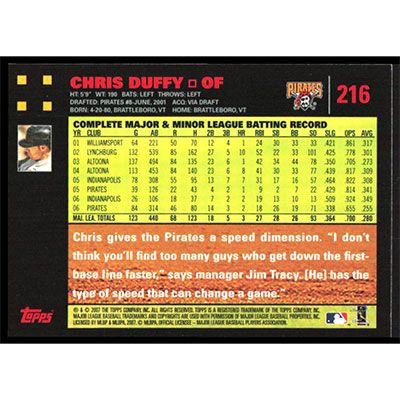 This is a 2007 Topps Red Backs Chris Duffy baseball card. The card is #216 and pictures show condition.