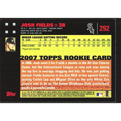 This is a 2007 Topps Red Backs Josh Fields baseball card. The card is #292 and pictures show condition.