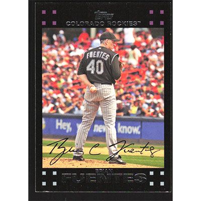This is a 2007 Topps Red Backs Brian Fuentes baseball card. The card is #57 and pictures show condition.