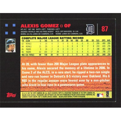 This is a 2007 Topps Red Backs Alexis Gomez baseball card. The card is #87 and pictures show condition.