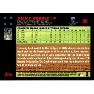 This is a 2007 Topps Red Backs Jimmy Gobble baseball card. The card is #88 and pictures show condition.