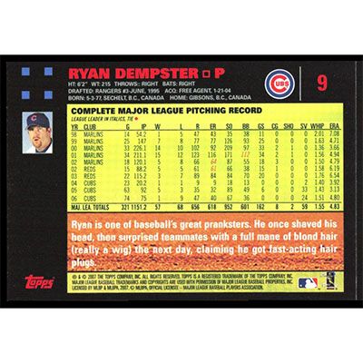 This is a 2007 Topps Red Backs Ryan Dempster baseball card. The card is #9 and pictures show condition.