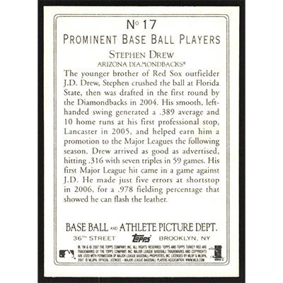 This is a 2007 Topps Turkey Red Stephen Drew baseball card. The card is #17 and pictures show condition.