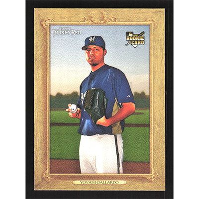 This is a 2007 Topps Turkey Red Yovani Gallardo baseball card. The card is #186 and pictures show condition. Team(s): Milwaukee Brewers Rookie Card (RC)