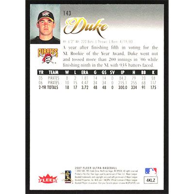 This is a 2007 Ultra Retail Zach Duke baseball card. The card is #143 and pictures show condition.