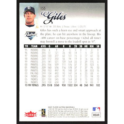 This is a 2007 Ultra Retail Brian Giles baseball card. The card is #155 and pictures show condition.