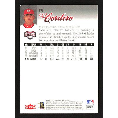 This is a 2007 Ultra Retail Chad Cordero baseball card. The card is #198 and pictures show condition.