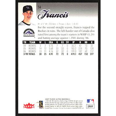 This is a 2007 Ultra Retail Jeff Francis baseball card. The card is #56 and pictures show condition.
