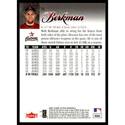 This is a 2007 Ultra Retail Lance Berkman baseball card. The card is #75 and pictures show condition.