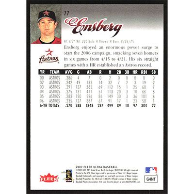 This is a 2007 Ultra Retail Morgan Ensberg baseball card. The card is #77 and pictures show condition.