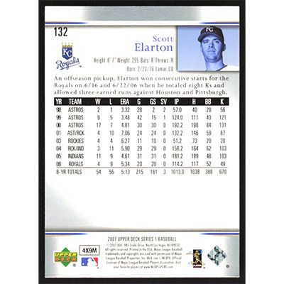 This is a 2007 Upper Deck Scott Elarton baseball card. The card is #132 and pictures show condition.