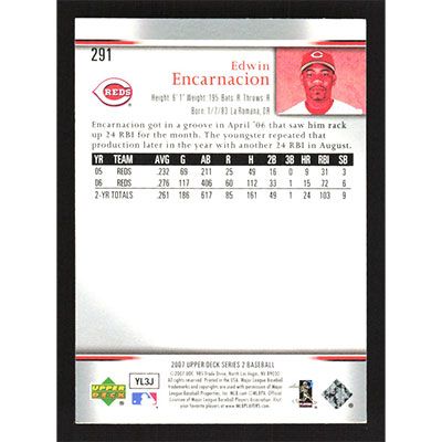 This is a 2007 Upper Deck Edwin Encarnacion baseball card. The card is #291 and pictures show condition.