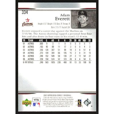 This is a 2007 Upper Deck Adam Everett baseball card. The card is #334 and pictures show condition.