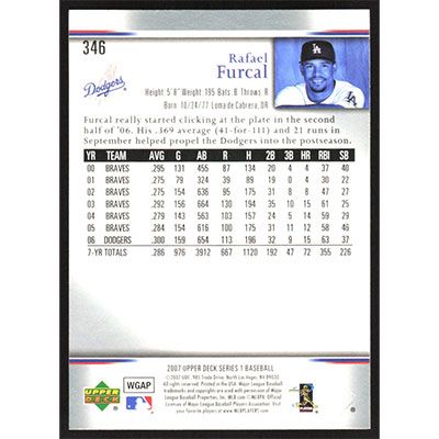 This is a 2007 Upper Deck Rafael Furcal baseball card. The card is #346 and pictures show condition.