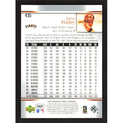 This is a 2007 Upper Deck Steve Finley baseball card. The card is #435 and pictures show condition.