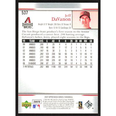 This is a 2007 Upper Deck Jeff DaVanon baseball card. The card is #537 and pictures show condition.