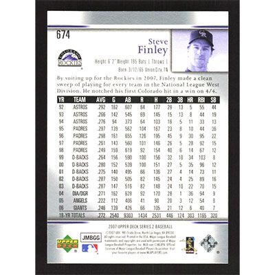 This is a 2007 Upper Deck Steve Finley baseball card. The card is #674 and pictures show condition.