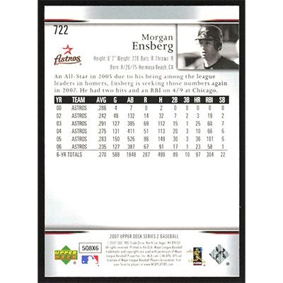 This is a 2007 Upper Deck Morgan Ensberg baseball card. The card is #722 and pictures show condition.