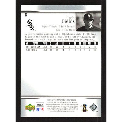 This is a 2007 Upper Deck Josh Fields baseball card. The card is #8 and pictures show condition.