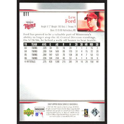 This is a 2007 Upper Deck Lew Ford baseball card. The card is #811 and pictures show condition.