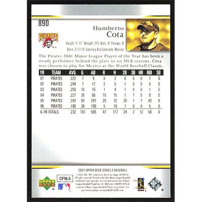 This is a 2007 Upper Deck Humberto Cota baseball card. The card is #890 and pictures show condition.