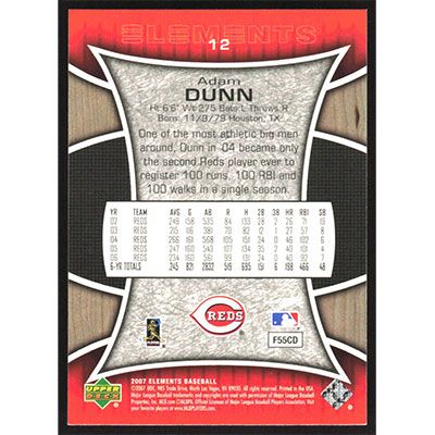 This is a 2007 Upper Deck Elements Adam Dunn baseball card. The card is #12 and pictures show condition.