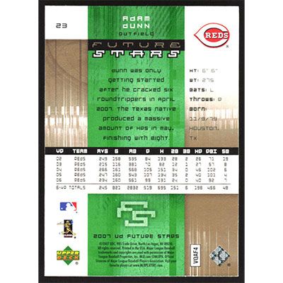 This is a 2007 Upper Deck Future Stars Adam Dunn baseball card. The card is #23 and pictures show condition.