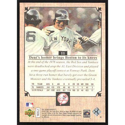 This is a 2007 Upper Deck Masterpieces Bucky Dent baseball card. The card is #11 and pictures show condition.