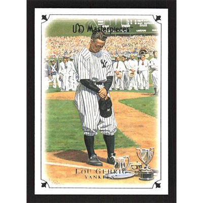 This is a 2007 Upper Deck Masterpieces Glossy Lou Gehrig baseball card. The card is #8 and pictures show condition.