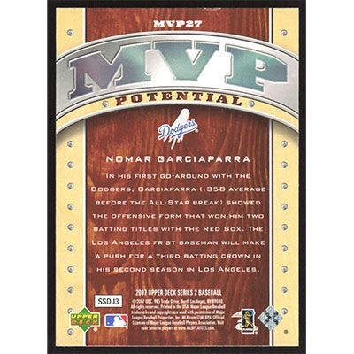 This is a 2007 Upper Deck MVP Potential Nomar Garciaparra baseball card. The card is #MVP27 and pictures show condition.