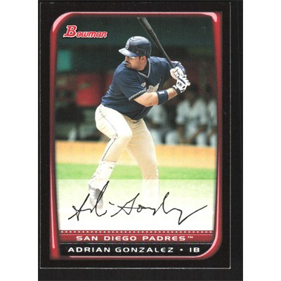 This is a 2008 Bowman Adrian Gonzalez baseball card. The card is #19 and pictures show condition.