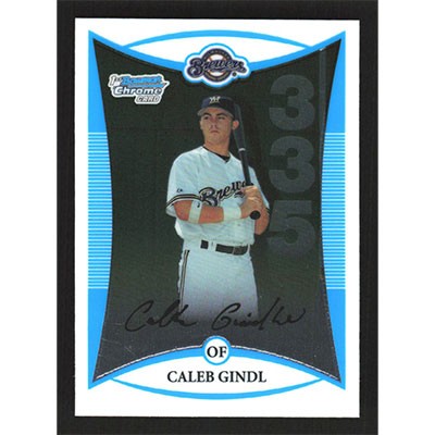 This is a 2008 Bowman Chrome Prospects Caleb Gindl baseball card. The card is #BCP85 and pictures show condition.