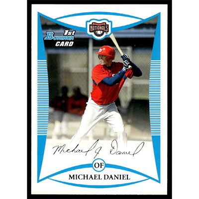 This is a 2008 Bowman Prospects Michael Daniel baseball card. The card is #BP33 and pictures show condition.