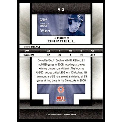 This is a 2008 Donruss Elite Extra Edition James Darnell baseball card. The card is #43 and pictures show condition.