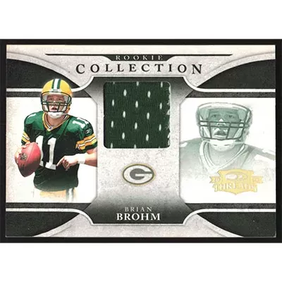 This is a 2008 Donruss Threads Rookie Collection Materials Brian Brohm Jersey football card. The card is #RCM-34 and pictures show condition. This card is limited; #'d 075/500.