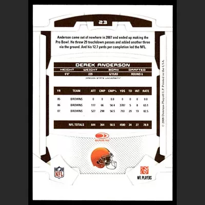 This is a 2008 Leaf Rookies & Stars Derek Anderson football card. The card is #23 and is in NM-MT condition.