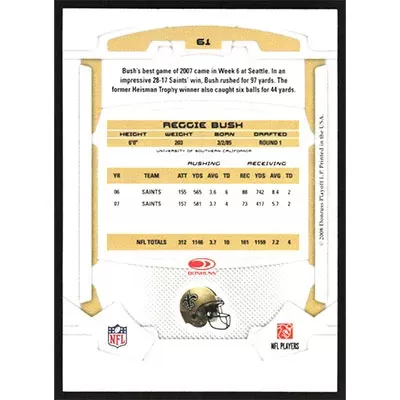This is a 2008 Leaf Rookies & Stars Reggie Bush football card. The card is #61 and pictures show condition.