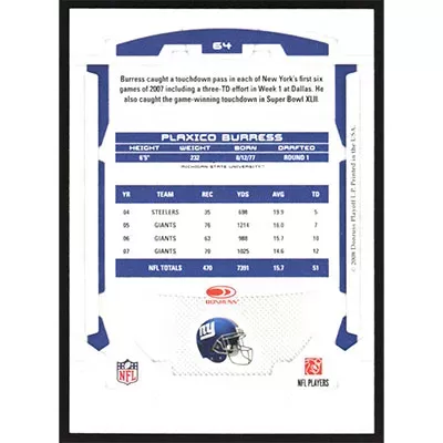 This is a 2008 Leaf Rookies & Stars Plaxico Burress football card. The card is #64 and pictures show condition.