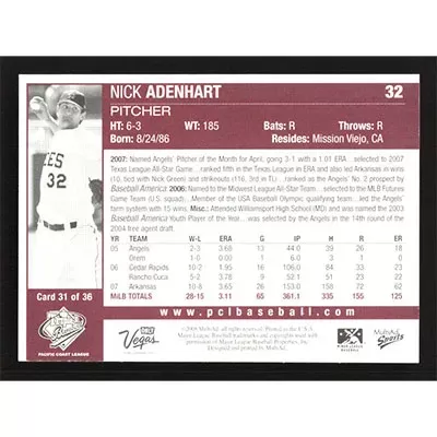 This is a 2008 Multi-Ad Pacific Coast League Top Prospects Nick Adenhart baseball card. The card is #31 and pictures show condition. Team(s): Salt Lake Bees